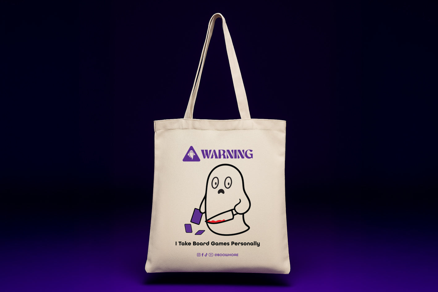 A bold statement for players who take every move seriously. This BOO Warning Tote features a dramatic ghost design that captures the intensity of true board game passion. Use it to carry your deck boxes, books, laptop, or snacks while showing everyone that you mean business.